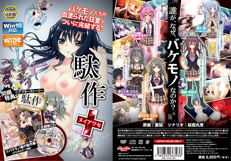 ■駄作とある学園に通う、由貴・アリス・華愛美・そまり・枢は、どこにでもいるような仲良し5人組。ある日彼らは、アリスの誕生日を祝おうとケーキをプレゼントする。そこにあるのは、どこにでもいるような仲良し5人組の、どこにでもあるような風景。しかし彼らはどこにでもいるような存在ではない……とてつもないバケモノ達……。そんなバケモノ達の織りなす風景が、ずっとどこにでもあるものであるはずがなく……。渇望が、執念が、後悔が、嫉妬が、そして劣等感が、バケモノ達を血の赤に染め上げる!!■駄作〜アリスとクロエ、結ばれる日〜3人(由貴・アリス・クロエ)の前に現れた、謎の少女!?灰樹由貴と菜々ヶ木アリス、そして菜々ヶ木クロエ。この三角関係は、3人が各々の望む愛情を与えるという形で一応の決着を迎える。それはバケモノが、バケモノなりに考えた、バケモノらしい解決法ではあったが……。……しかし3人にとっては、ようやくたどり着いた楽園だった。そんな中、その楽園を目にした一人の少女は、「あの三人が化け物である理由……そういう事か……」と呟いて、不敵な笑みを浮かべながらその場を去っていった……。【同梱特典】主題歌CD「化け物は」