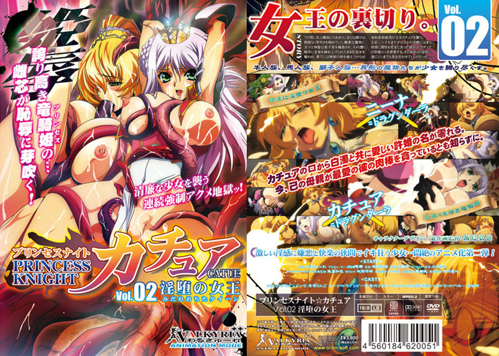 【第二巻みどころ】可憐で気丈な竜騎士姫カチュアを苛む無数の魔肉棒!急襲してきた魔族から祖国を、母を、仲間を救うため、カチュアは淫辱の日々に耐え続ける!七日間に及ぶ魔族とのあまりに淫らな賭けは、日を追うごとに苛烈を極めていく!異形の魔族に次々と輪●され神聖な姫子宮を汚され……ヌメり踊る触手に全身を締め上げられ肛処女を奪われ……果てには卵を植え付けられ産卵絶頂を強要される……!抗い難い恥辱を受けるカチュア! 幾度も竜騎士にあるまじきイキ顔を晒す!そして地下に囚われた女王ニーナにまでもあまりにも淫らな陰謀が襲いかかる!果たしてカチュアはアヘリ狂うことなく、7日間を乗り切ることができるのか!?人気ゲーム「プリンセスナイト☆カチュア」待望のアニメ化第二弾!ひたすらに少女が責められ、犯●れ、嬲られる姿をその目に焼き付けろ!【スタッフ】プロデューサー:show隈部監督:牧野行洋脚本:可動命キャラクター原案:わざきたキャラクターデザイン/総作画監督:飯島弘也絵コンテ/演出:牧野行洋美術監督:一二三撮影監督:東郷誠音響監督:中川達人【キャスト】・カチュア=ドラグンダーラ:青葉りんご・ニーナ=ドラグンダーラ:青川ナガレ・ギニョル:大凶魔神天誅・ジンドラック=ヘミー:鳥谷絢■収録時間:30分■画像サイズ:16:9ビスタサイズ■Windowsメディアプレイヤーでご覧頂けます。デモは公式サイト「わるきゅ〜れオフィシャルホームページ」にて公開中!