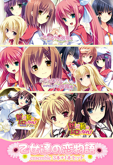 『花と乙女に祝福を』『花と乙女に祝福を ロイヤルブーケ』『黙って私のムコになれ!』期間限定で配布された「黙って私のムコになれ!」より『玲央奈アフター』の4作品が収録されたとってもお得なセットが登場です♪♪【収録作品】▽▼花と乙女に祝福を▼▽病弱な妹に代わり、女装してお嬢様学園に通うことになった主人公・月丘彰。双子の妹・晶子伝統あるミッション系女学園で、妹が復帰するまで正体がばれないように、平凡な暮らしを心がける。しかし、そんな思いとは裏腹に何故か学園一の超お嬢様に見初められるわ、初日に女装がバレてしまったりと学園全体を巻き込むドタバタ劇の中心になってしまう!はたして、主人公は無事に妹の代役を勤めることができるのか!?▽▼花と乙女に祝福を ロイヤルブーケ▼▽『花と乙女に祝福を』のユーザーの皆さんから反響が大きかったキャラクターたちとのifストーリーを盛り込んだアフターストーリー集。晶子・都・聖佳の個別ストーリーに加え、綾音と三船の後日談。そして、ハーレムストーリーの5つのストーリーをお楽しみ頂けます!◆夏だ!プールだ!お祭りだ!!〜都のとてもながい一日〜◆兄さんは私の下僕?〜月丘晶子の優雅な一日〜◆彰・漢化計画〜性を取り戻せ!〜◆心は女。体は男?!〜天法院綾音 華麗なる軌跡〜◆連夜連闘?名木城家、愛のお泊り会▽▼黙って私のムコになれ!▼▽主人公をめぐる少女たちの熱い想いは・・・・・・そして主人公の平凡な恋愛を願う儚い思いの行き先は──!?主人公はツンクールな幼なじみと破天荒お嬢様を筆頭に、先輩・同級生・後輩・妹・謎の少女たちにモテモテにナイスガイ。ついには学園を挙げて【嫁投票】が行われることになった彼を巡って、ヒロインたちの壮絶なアピール合戦が始まるッ!?▽▼黙って私のムコになれ! 玲央奈アフター▼▽嫁投票が終わり、ラブラブになったはずの直樹と玲央奈。玲央奈は両想いになったんだから、これからは周りを気にせずイチャイチャできる!と期待する。だが直樹の反応は今までとさほど変わらない。別に冷たいわけではなく、むしろ以前に比べたら優しくなったが、イチャイチャとは程遠い反応の直樹にモヤモヤする玲央奈。遥に相談すると「原因は玲央奈に魅力が無いから」だという話に。そこで玲央奈は遥から『ある秘策』を得て週末に直樹を自宅へ誘うことにするが・・・・・・?!※『黙って私のムコになれ! 玲央奈アフター』は、単品の取り扱いはしておりません。※ご購入後は、1タイトルずつダウンロードが可能です。