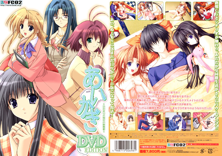 2002年のPC版発売から、ファンブック、小説、コンシューマと人気を着実伸ばしてきたシリーズ『あいかぎ』。その『あいかぎ』がDVD版となって登場です。PC版にはなかった新規イベントCGと、新しいシナリオを追加。また音声も新規撮り下ろしと、『チェリッシュピザ』『橋本タカシ新企画』の合間を縫って制作したFC02からみなさまへの感謝タイトルです。鈴平ひろのキャラデザとうらわのシナリオ。色褪せない姉妹同棲AVG 『Piaキャロットへようこそ!!3』で「木ノ下貴子」のキャラクターデザインと原画を担当し『あいかぎ』でメインクリエーターに抜擢された鈴平ひろ。彼女の『あいかぎ』発売後の活躍ぶりはみなさんの知るところです。またシナリオライターのうらわは初のメインシナリオ担当でしたが、臆するところなく葉月彩音・千香と主人公の三角同棲シナリオを仕上げることが出来ました。本作はその活躍するクリエーターの代表作に追加要素を加え、完成度を高めたものとなっております。